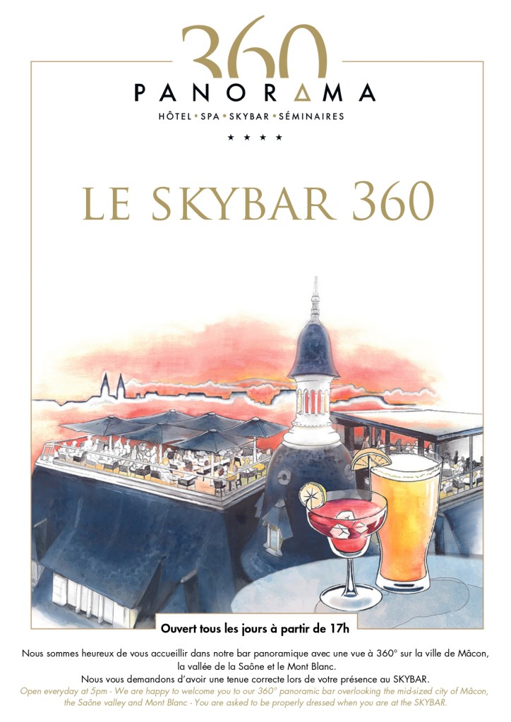 Illustrations réalisées pour la carte du Skybar de l’Hôtel Panorama 360à Mâcon, en 2024.