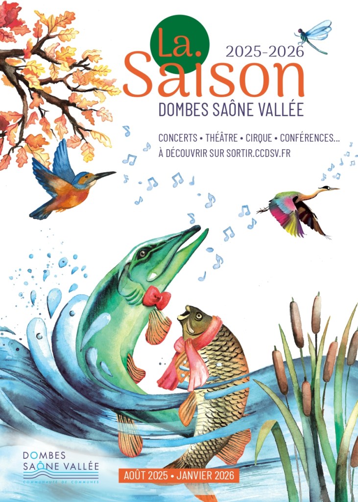 Création d’illustrations à l’aquarelle pour trois brochures de la saison culturelle de la Communauté de communes Dombes Saône Vallée.